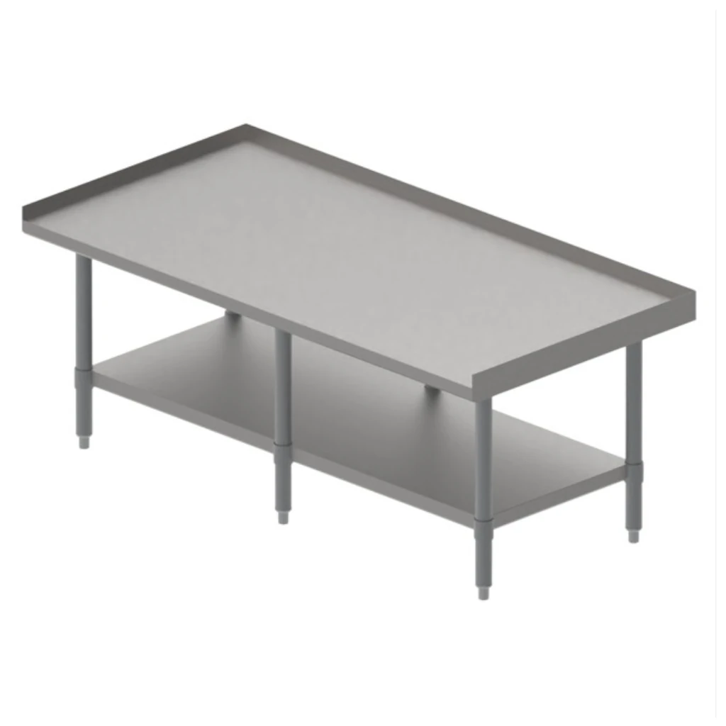 - Este soporte está pensado para entornos industriales y cocinas de alto rendimiento. Su estructura robusta soporta equipos pesados sin perder estabilidad, asegurando que el trabajo diario se realice de forma segura y eficiente. Además, los niveladores permiten ajustar la altura para adaptarse a distintas necesidades.
