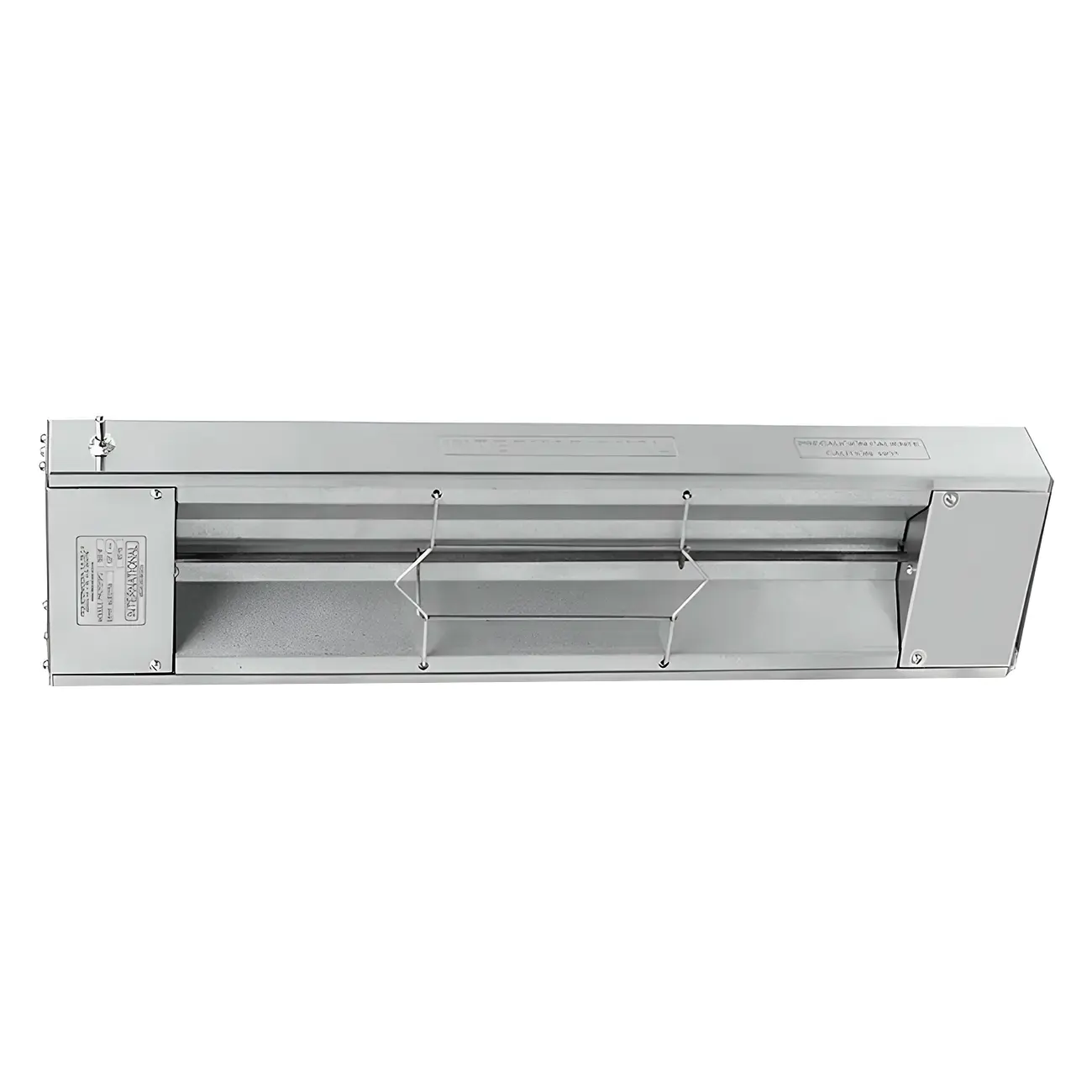 La lámpara está fabricada con acero inoxidable en la envolvente, lo que la hace resistente a la corrosión y fácil de limpiar. La lámina aluminizada (calibre 20) en la parte radiante asegura una distribución uniforme del calor. - Diseño compacto y funcional:
