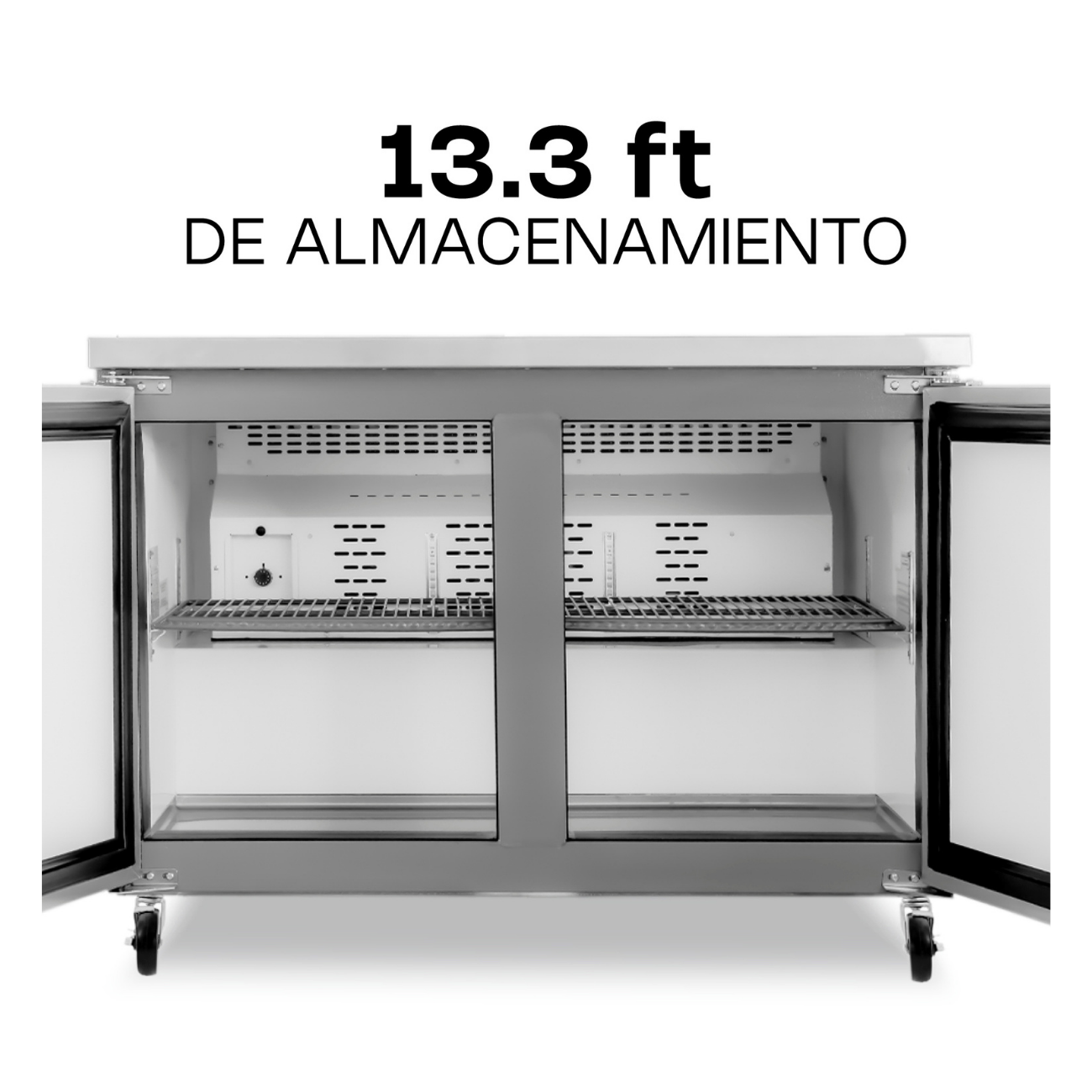 Capacidad total de 13.3 pies cúbicos, perfecta para conservar una amplia variedad de productos frescos.